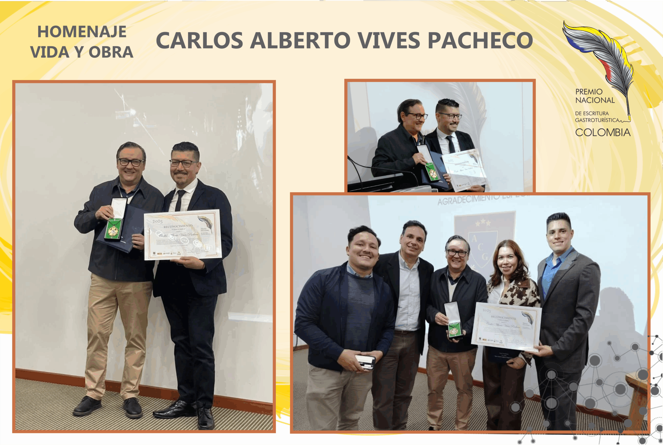 Durante la ceremonia se realizó un reconocimiento por vida y obra al señor Carlos Alberto Vives Pacheco, por su ardua e incansable labor en la articulación de estrategias para la promoción del turismo gastronómico del país.